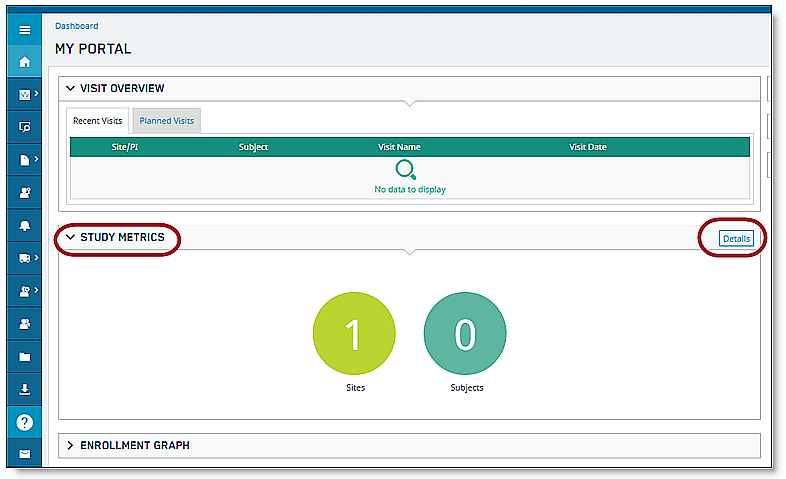 1. On the main Portal Dashboard, scroll down until the Study Metrics widget is visible.